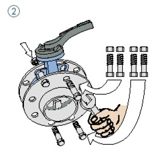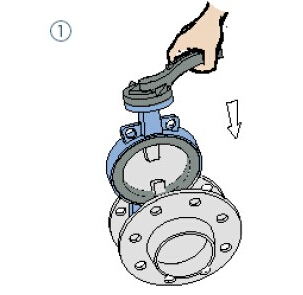 (1)将阀门放置于预安装的两片法兰之间;