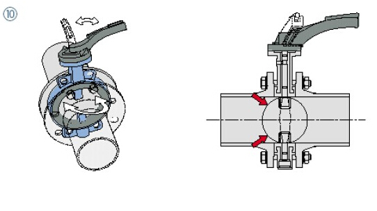 (10)再检查一遍确认阀门能自由开闭,注意:请确认阀板没有碰到管道。