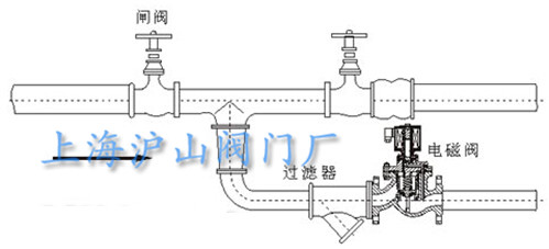当电磁阀安装在支路时,电磁阀的口径应比主管道的阀门口径小,分路装置如下图: